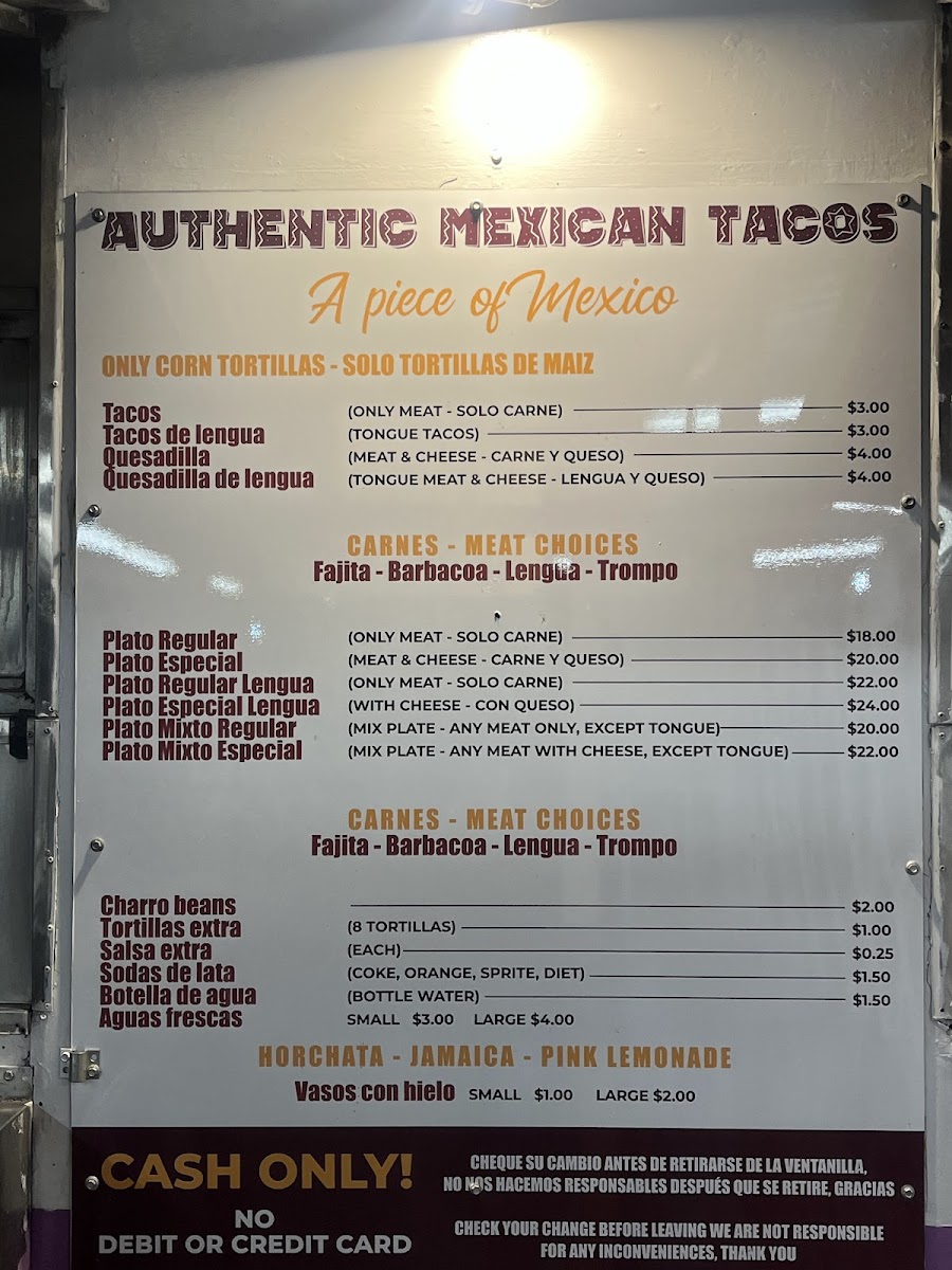 This menu is well-suited for those who appreciate a no-frills dining experience where the focus is on genuine, well-seasoned meats and straightforward preparations. The casual, food-truck atmosphere invites you to enjoy flavorful tacos and plates in an informal setting, making it easy to stop by for a satisfying bite whether you’re on your lunch break or seeking a laid-back meal.